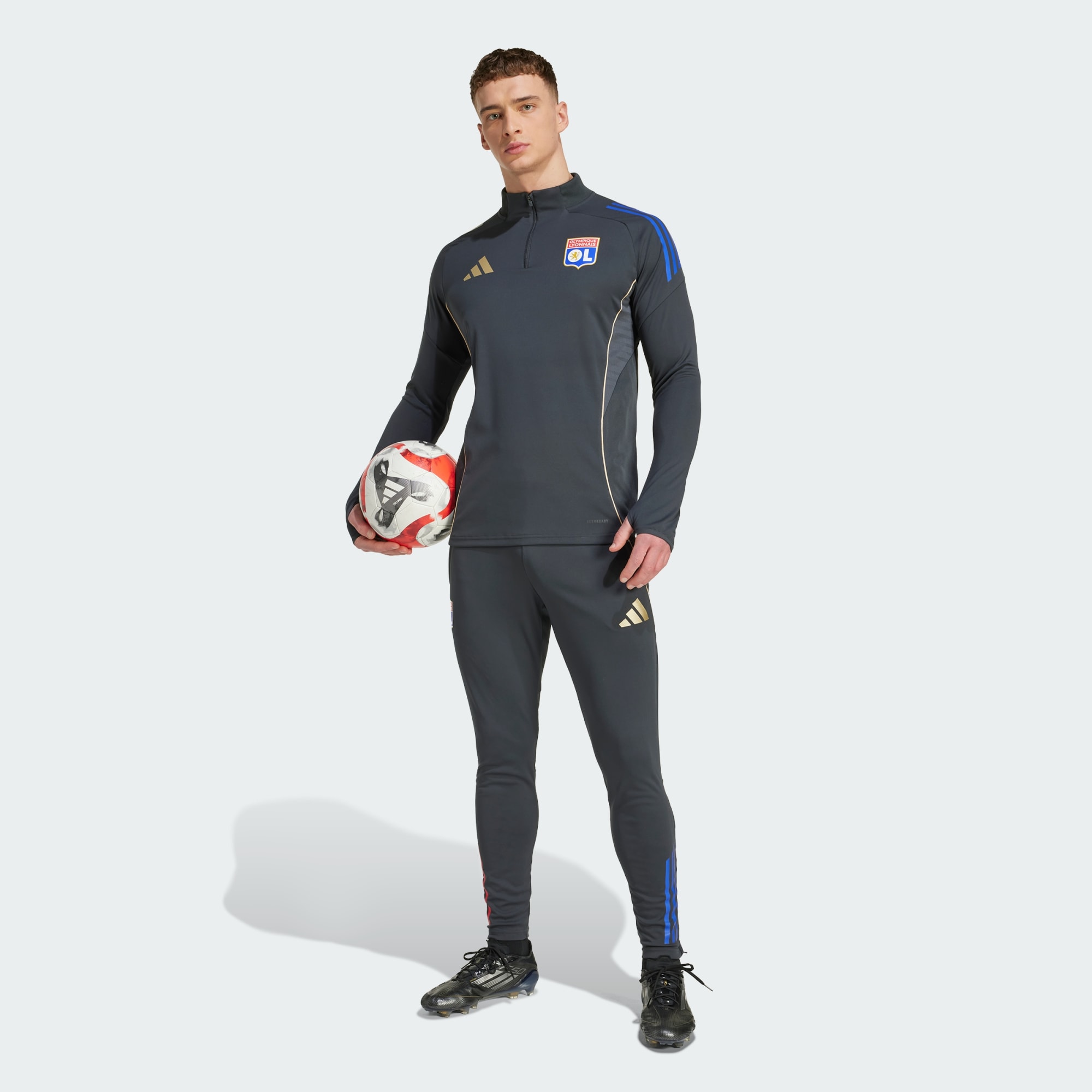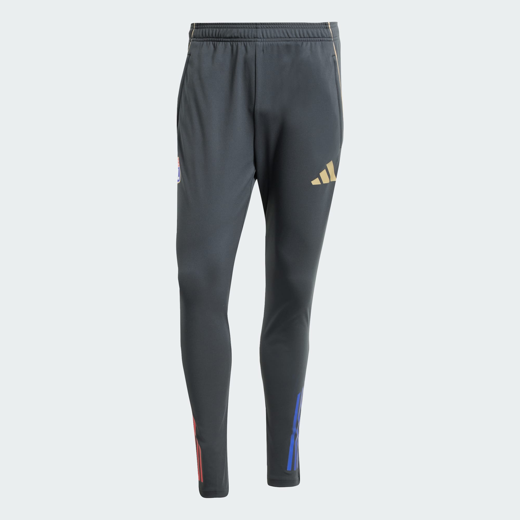 Dopasowane spodnie treningowe w stylu Olympique Lyon.