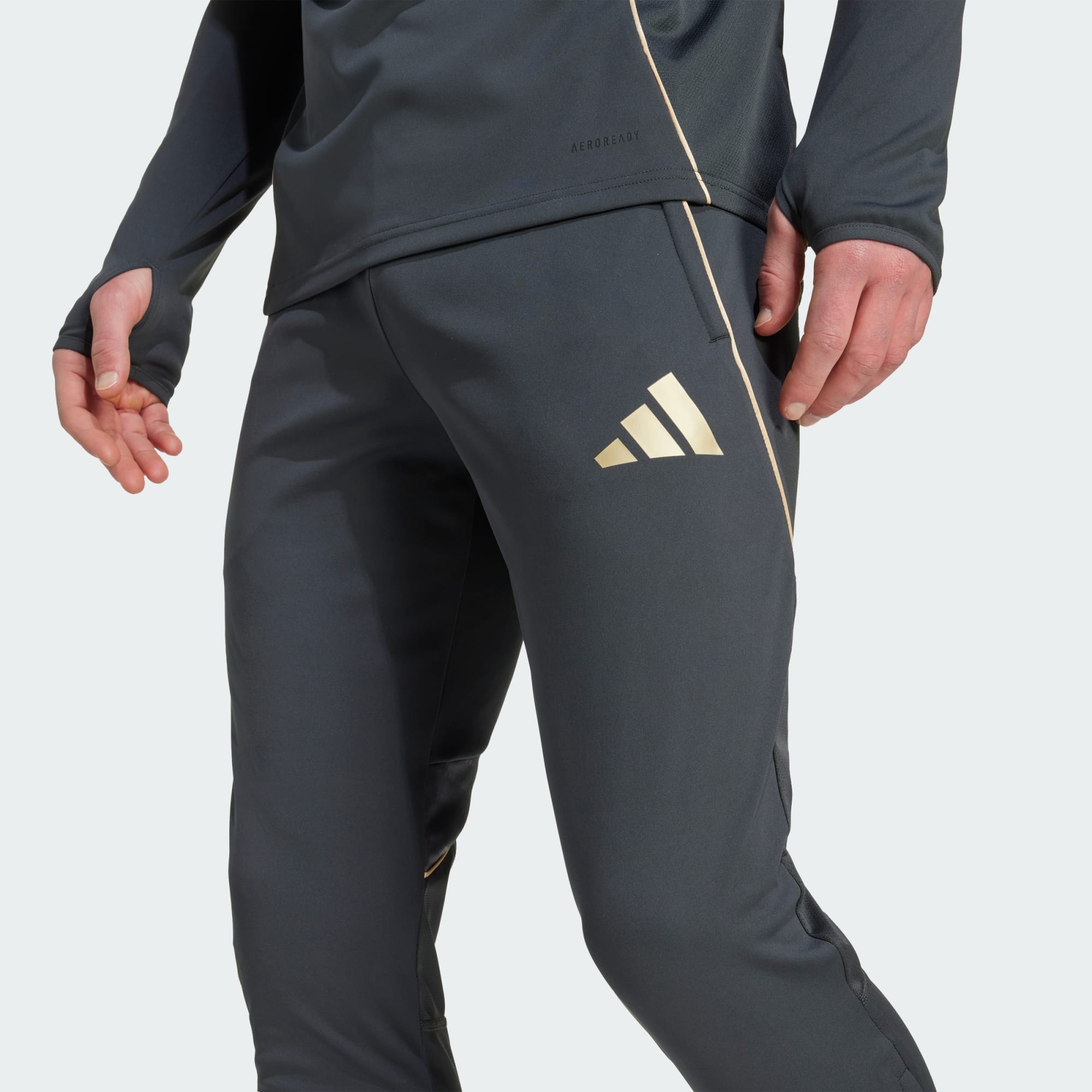 Reprezentuj swój klub piłkarski, gdy szlifujesz swoje umiejętności. Te dopasowane spodnie treningowe Olympique Lyon od adidas zostały uszyte z elastycznej dzianiny o gęstym splocie, która wygina się przy każdym skłonie, nie ograniczając Twoich ruchów. Odprowadzający wilgoć AEROREADY zapewnia Ci świeżość i suchy komfort, nawet gdy naniesione pod wpływem temperatury godło klubowe inspiruje do podkręcenia tempa.