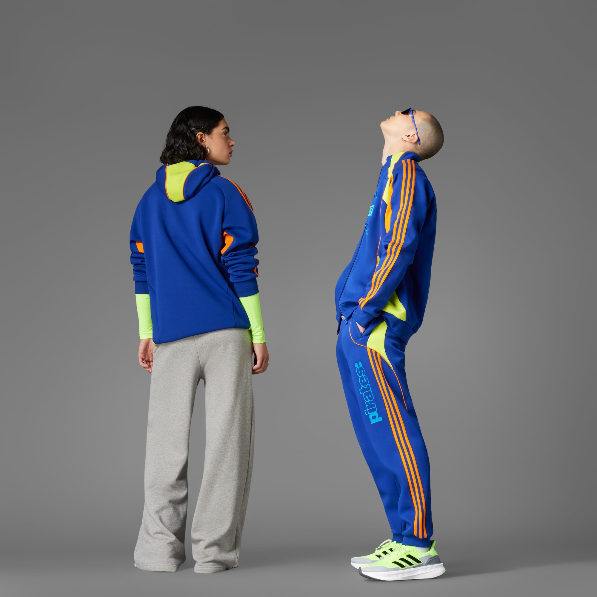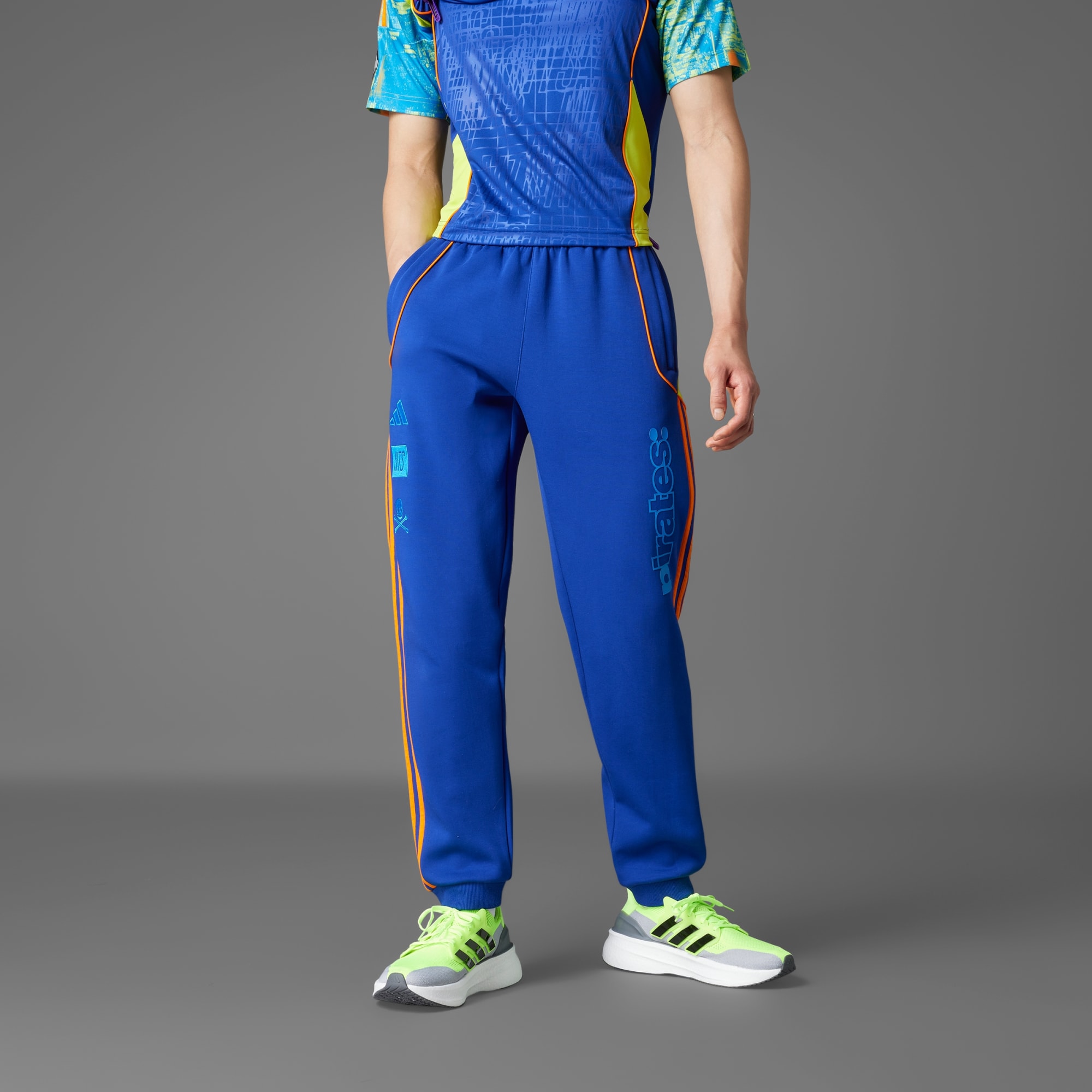 Znajdź swój piłkarski głos w spodniach dresowych stworzonych przez adidas i NTS Radio. Model będący częścią kolekcji, która oddaje hołd relacji między muzyką a piękną grą, łączy styl piłkarski z drugiej dekady XXI wieku z południowoafrykańskimi wpływami amapiano, odzwierciedlając prawdziwy dźwięk Orland Pirates FC. Naszywka drużyny, logo NTS i stylizowana grafika "Pirates" uzupełniają look stworzony z myślą o śpiewie.