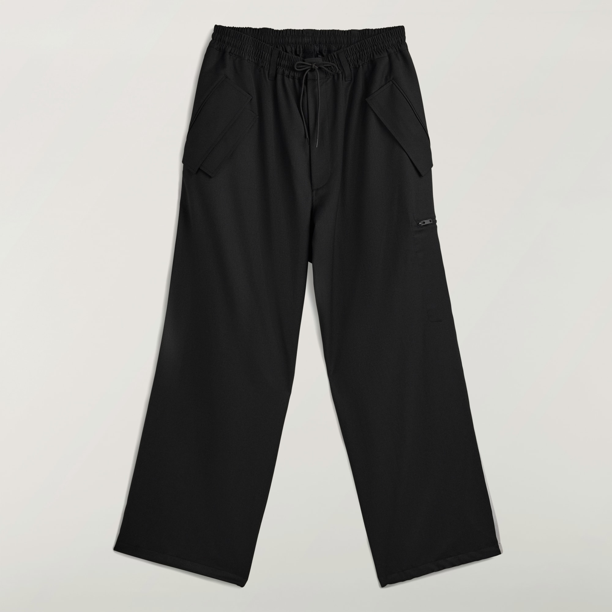 Y-3 tworzy projekty, które wykraczają poza schematy, czego przykładem są spodnie wełniane Y-3 Refined z prostymi nogawkami. Spodnie uszyto z wełnianej mieszanki, a prosty krój i elastyczna talia nadają im sportowy charakter. Kieszenie z klapką w pasie oraz pozioma kieszeń na lewej nogawce zostały wykończone charakterystycznymi 3 paskami, które biegną aż do samego dołu nogawki.