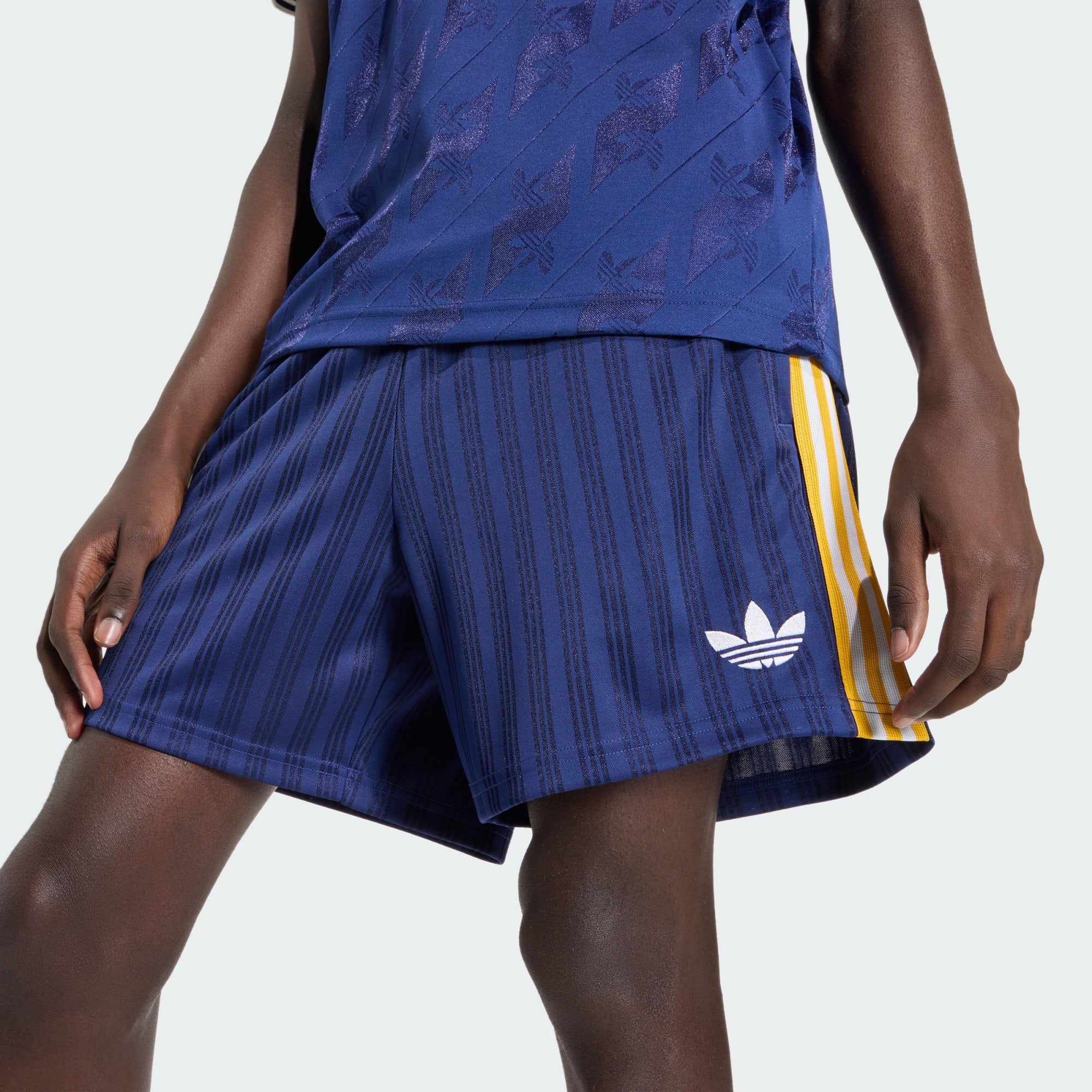 Jeśli chodzi o styl inspirowany piłką nożną, szorty Real Madrid Originals to idealny wybór, jeśli zależy Ci na luźnym, ale kultowym wyglądzie. Nawiązujący do dziedzictwa gry model wprowadza klasyczny sportowy akcent do codziennej garderoby. Niezależnie od tego, czy kibicujesz swojej drużynie z trybun, czy cieszysz się swobodnym dniem, te szorty są stworzone, aby robić to w dobrym stylu. Luźny krój gwarantuje swobodę ruchów i relaks, a zapięcie na sznurek zapewnia regulowane dopasowanie dające pewność noszenia. Kultowe logo adidas Trefoil stanowi odważny akcent i ukłon w stronę bogatego dziedzictwa odzieży sportowej, a dzianina idealnie dopasowuje się do skóry, sprawiając, że odczuwasz komfort zarówno w relaksujące, jak i aktywne dni. Szorty zaprojektowane dla tych, którzy cenią autentyczny styl piłkarski, zostały stworzone z myślą o wszechstronnej wydajności i nowoczesnym komforcie. Poczuj energię kultury piłkarskiej i spraw, by te szorty stały się podstawą kolekcji odzieży sportowej.