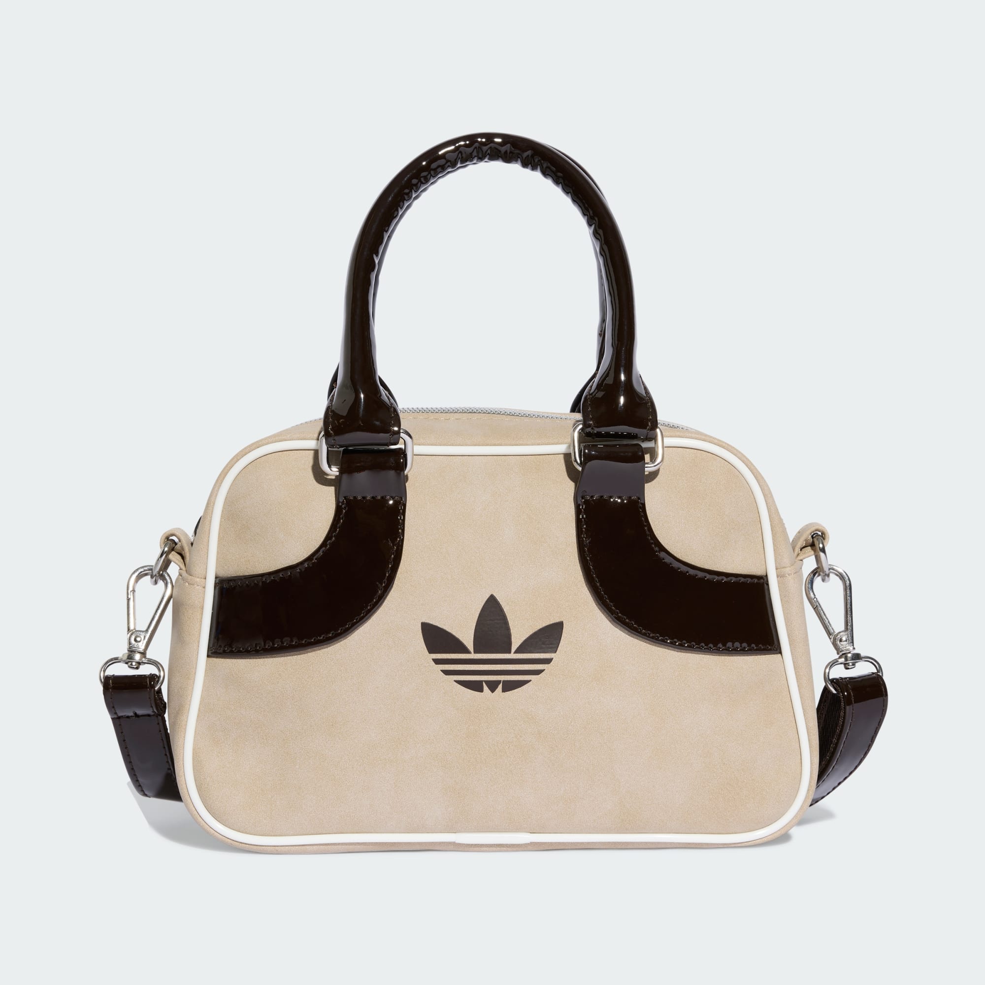Ta torba Mini Bowling jest inspirowana oldschoolowymi modelami adidas i została wykonana z połączenia lakierowanej i gładkiej imitacji skóry, co nadaje jej eklektyczny wygląd. Ukośne kształty z przodu dodają jej charakterystycznego stylu. Kieszenie na suwak wewnątrz i na zewnątrz pomogą Ci utrzymać porządek. Dzięki stylowi vintage ta torba jest uniwersalna i sprawdzi się w każdej sytuacji.