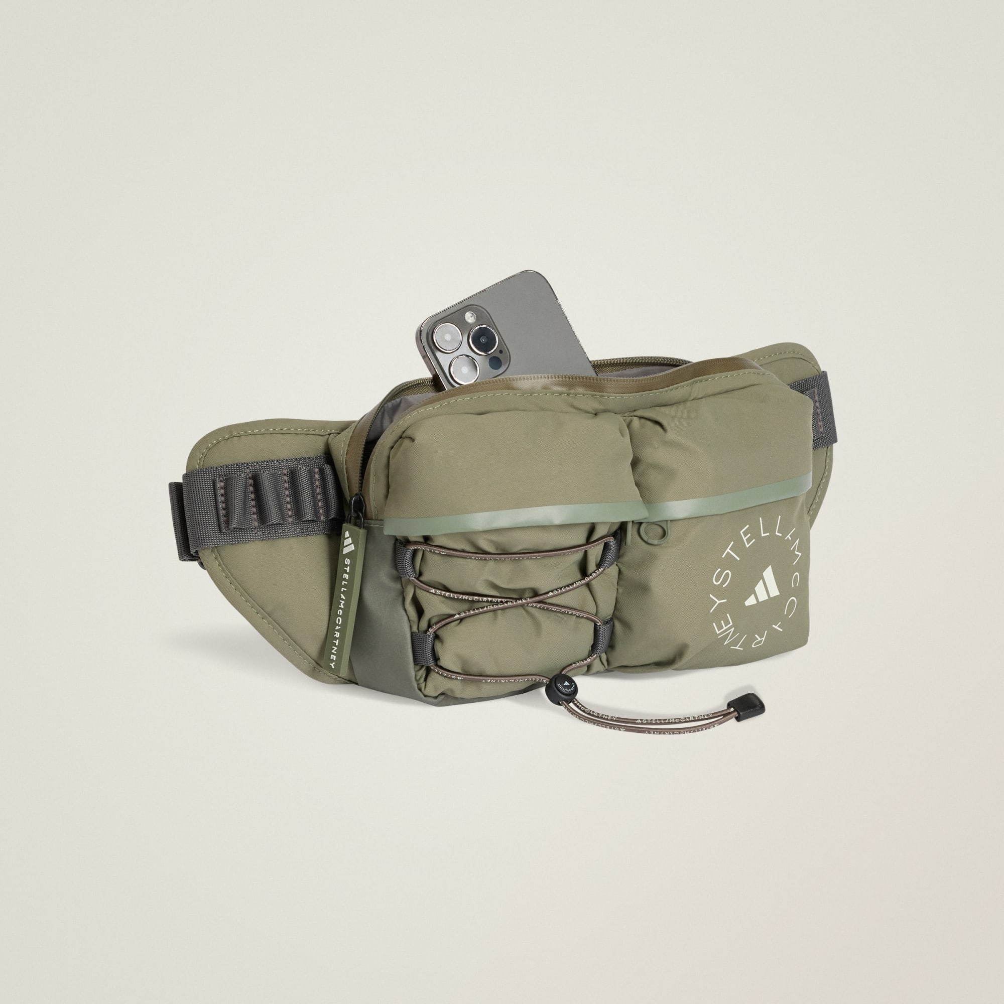 Noś torbę-nerkę z kolekcji adidas by Stella McCartney w talii, aby mieć wolne ręce, lub przewieś ją przez tułów, gdy jesteś w ruchu. Liczne kieszenie zapinane na zamek, w tym dwie z przodu i jedna wewnątrz, zapewniają mnóstwo miejsca na portfel, telefon i inne niezbędne rzeczy.
