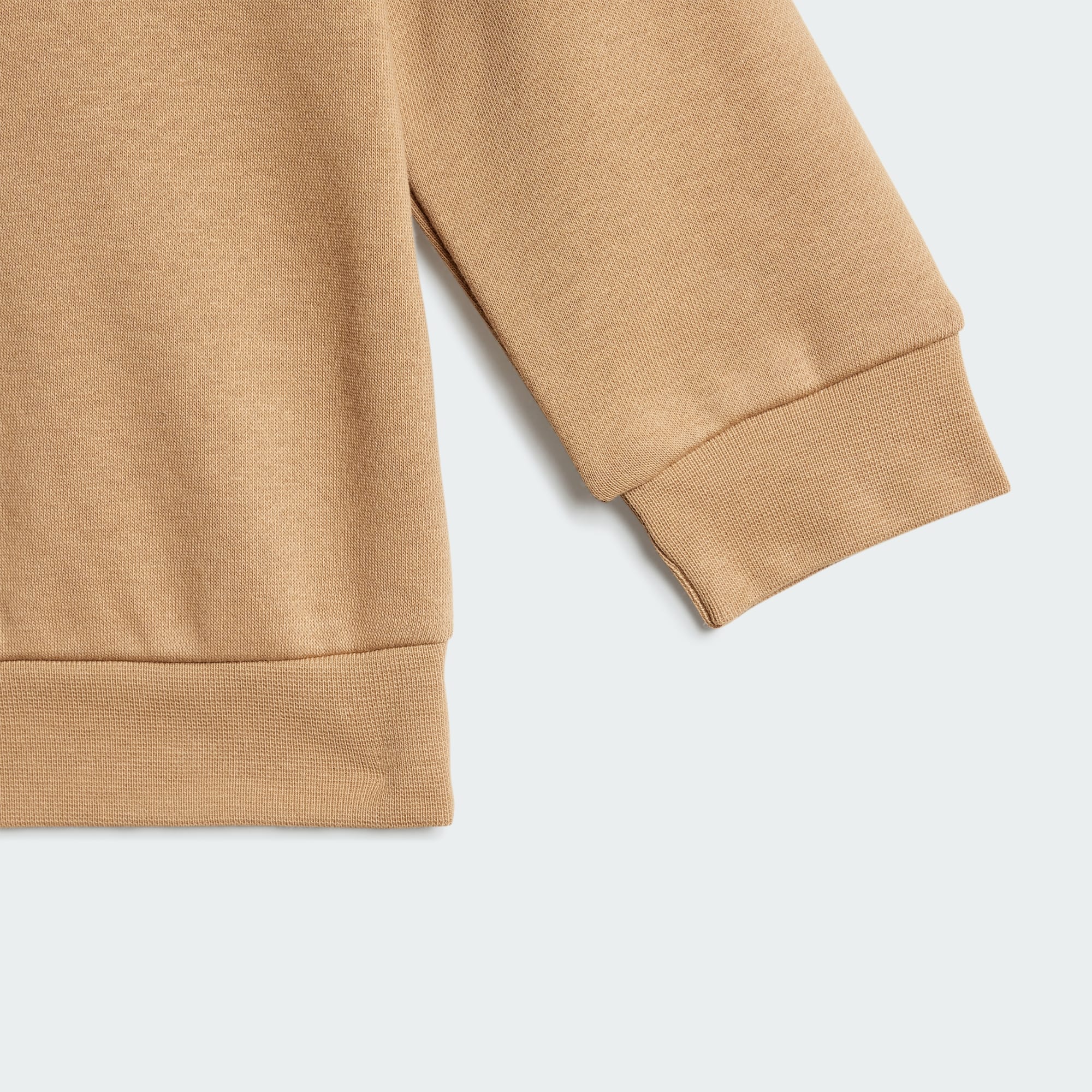 Ten zestaw niemowlęcy obejmujący bluzę z kapturem komfortowo otula malucha miękkością od stóp do głów. Mankiety ze ściągaczem zapewniają ciepło, a polar z recyklingu otula malucha miękkością, która przywodzi na myśl puszystą chmurę. Kontrastowe logo Trefoil na bluzie z kapturem i spodniach cargo stanowią ukłon w stronę dziedzictwa adidas, łącząc nowe pokolenie z dziedzictwem sportu i stylu.