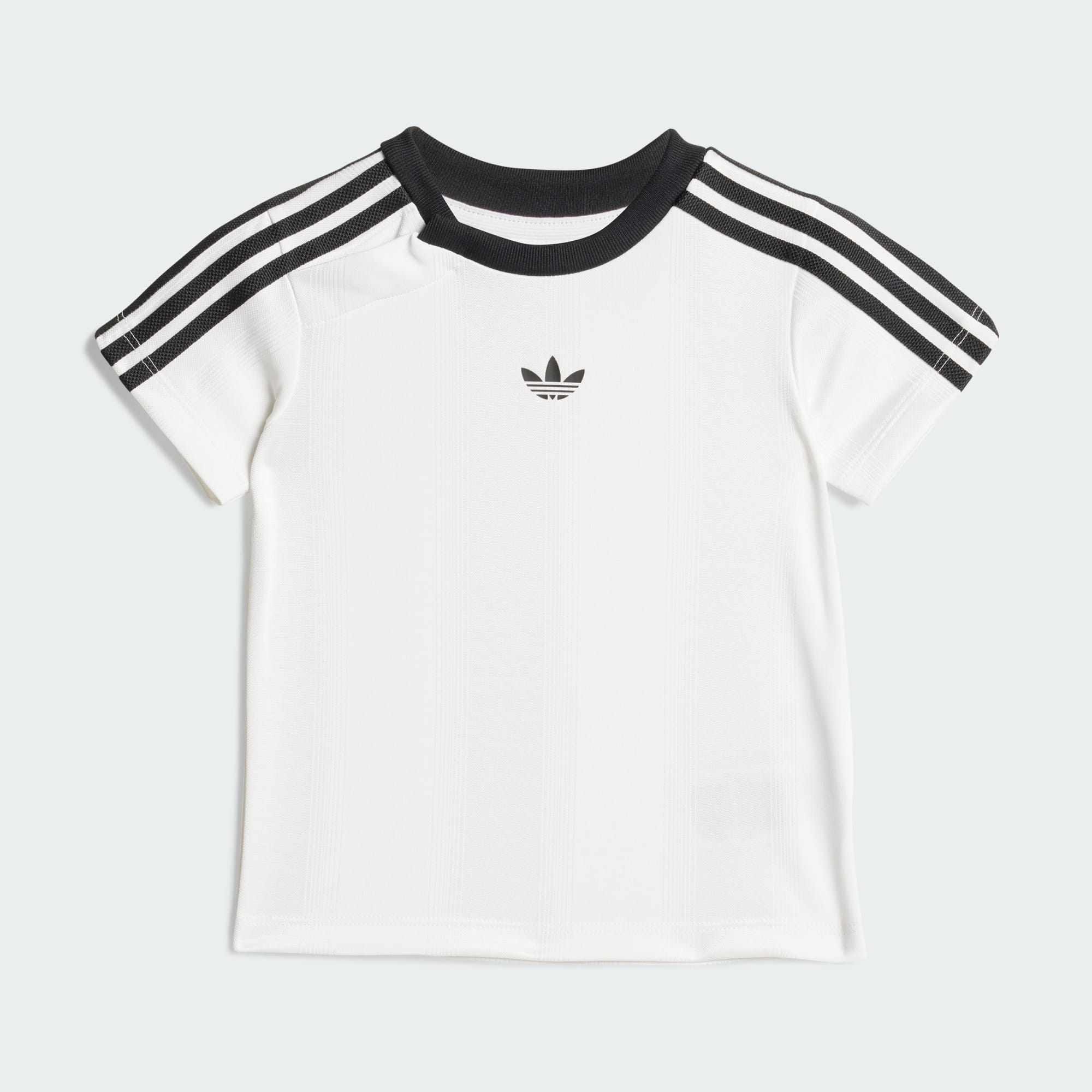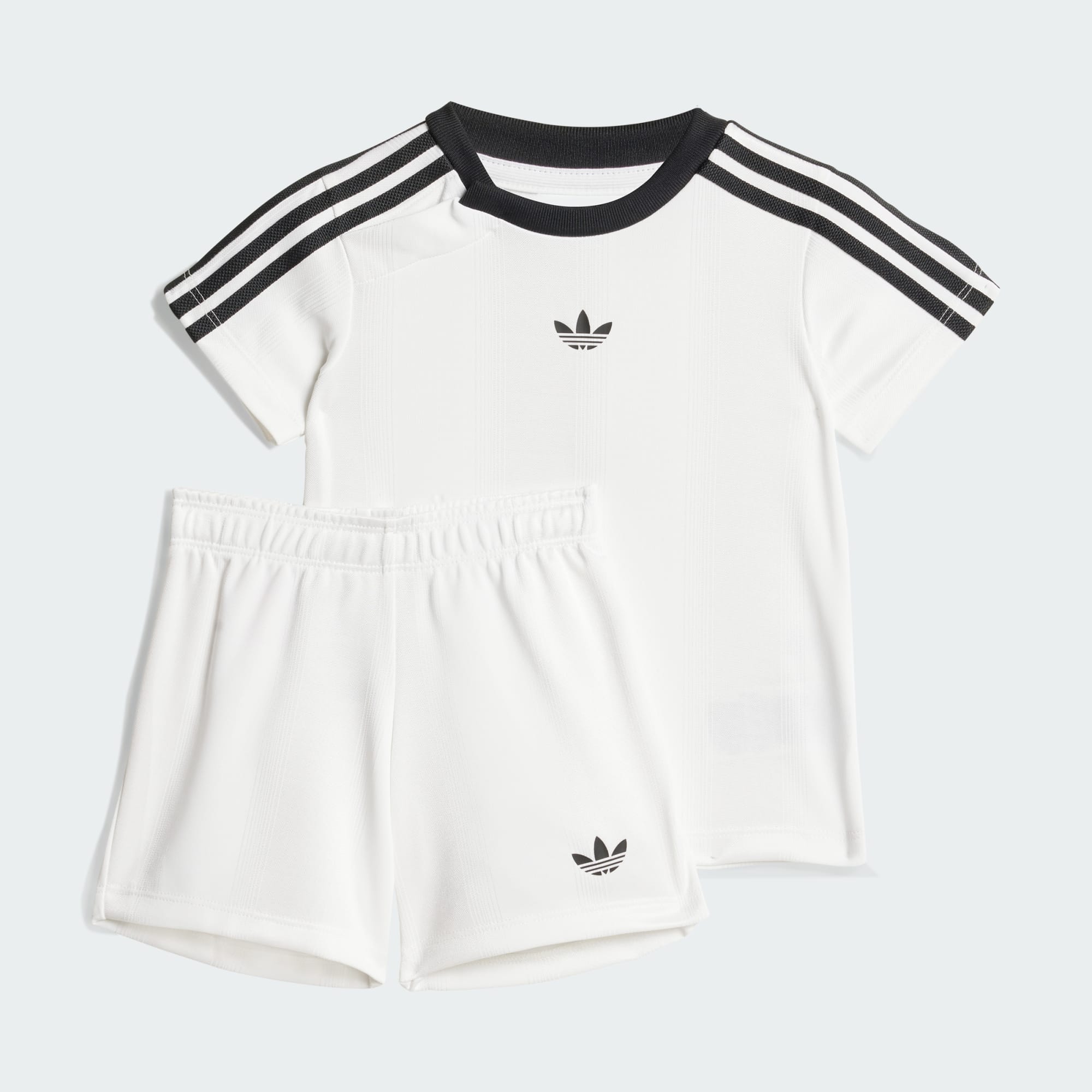 Ubierz swojego małego kibica na dzień meczu lub na co dzień w ten zestaw adidas dla najmłodszych. Koszulka i pasujące do niej szorty zostały uszyte z miękkiej dzianiny żakardowej, która zapewni maluchom komfort przez całą akcję. 3 paski i logo Trefoil nawiązują do tradycji adidas.